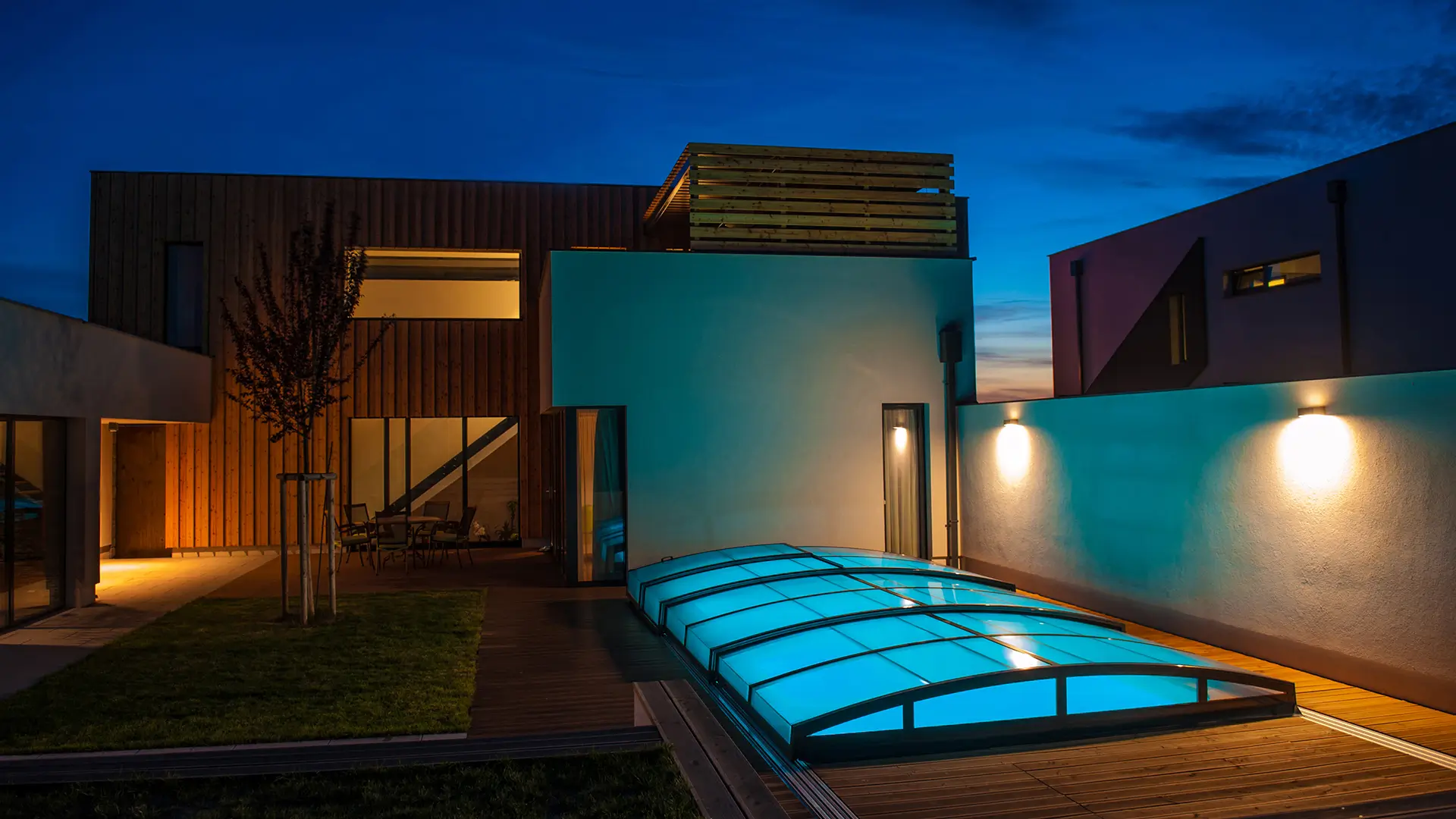 Válaszunk: Amennyiben a letisztult, minimál design a szent, és nyitott állapotban semmit sem akar látni a fedésből, a sín nélküli biztonsági PVC, vagy a víz alá rejtett automata redőny a megoldás. Ha viszont a meleg víz és a hosszú szezon megér egy kis vizuális kompromisszumot, a mai polikarbonát rendszerek ultra-lapos profiljai már kifejezetten elegánsan simulnak a környezetbe.