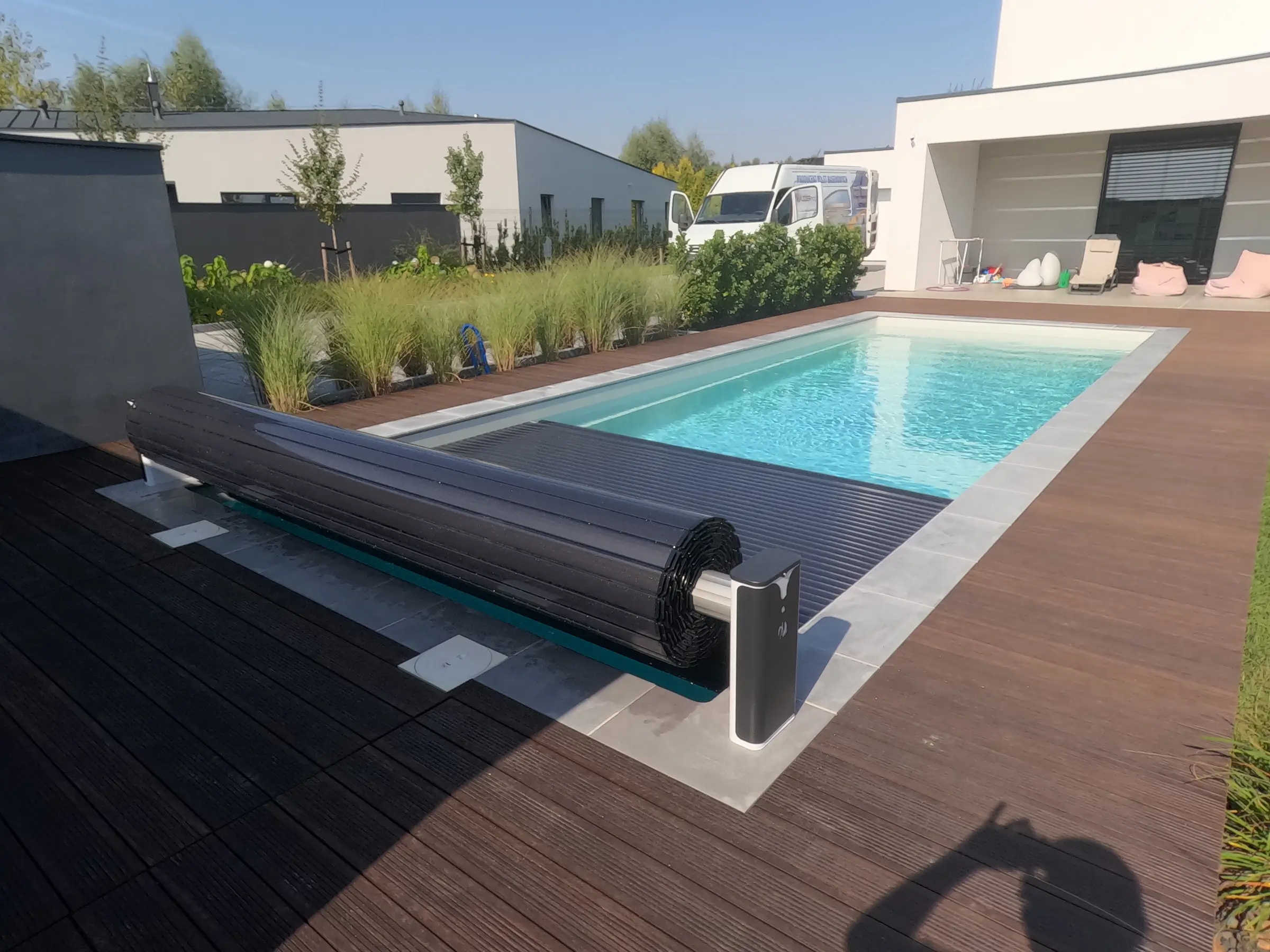 A redőny legnagyobb esztétikai előnye a „tiszta” medencepart. Nincsenek botlásveszélyes sínek vagy a burkolatot megtörő rögzítések. Nyitott állapotban a fedés teljesen láthatatlanul simul a medence végébe vagy egy rejtett aknába, megőrizve a kert építészeti egységét.