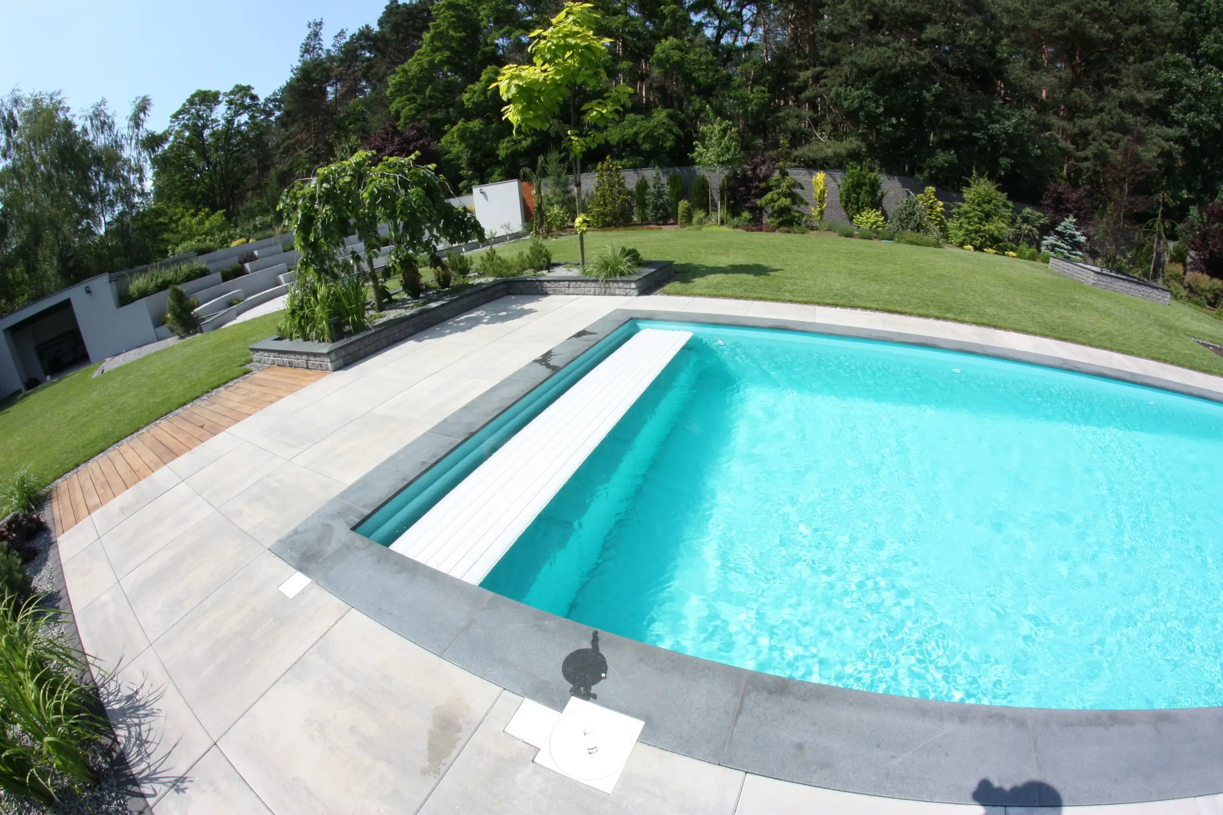 A legmodernebb medencék titka a vízfelszín alatt rejlik. A víz alatti redőnyrendszerek teljes mértékben rejtve maradnak, így semmilyen gépészeti elem nem zavarja meg a medence és a kert vizuális egységét, miközben maximális védelmet nyújtanak.